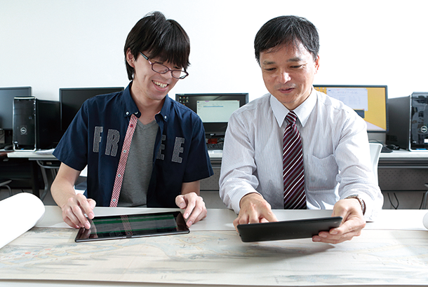そうですね。総合情報学部には映像制作、プログラミング、コンテンツ開発などいろいろなことをやっている学生がたくさんいます。彼らに私が「こういうものを作ったら面白いんじゃないか」と投げかけると、彼らもアイデアを出す。そのアイデアをどんどん作り込んで、できあがると展示会に出すという感じで、コンテンツは学生が中心になって開発しています。開発の過程では地域の方々と交流する機会もあります。コンテンツを体験した人の反応を見ることで初めて分かる改善点もあります。講義だけでは身に着かない技術や知識を、実践を通じて得ることができるので、学生と一緒に取り組む素材としては、これは大変良いテーマだと思っています。