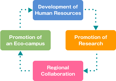 The Center aims to be recognized by society as an institution that contributes to the conservation of the global environment from multiple perspectives through the development of human resources and the creation of new technologies, by taking advantage of the characteristics of an educational and research institution.
