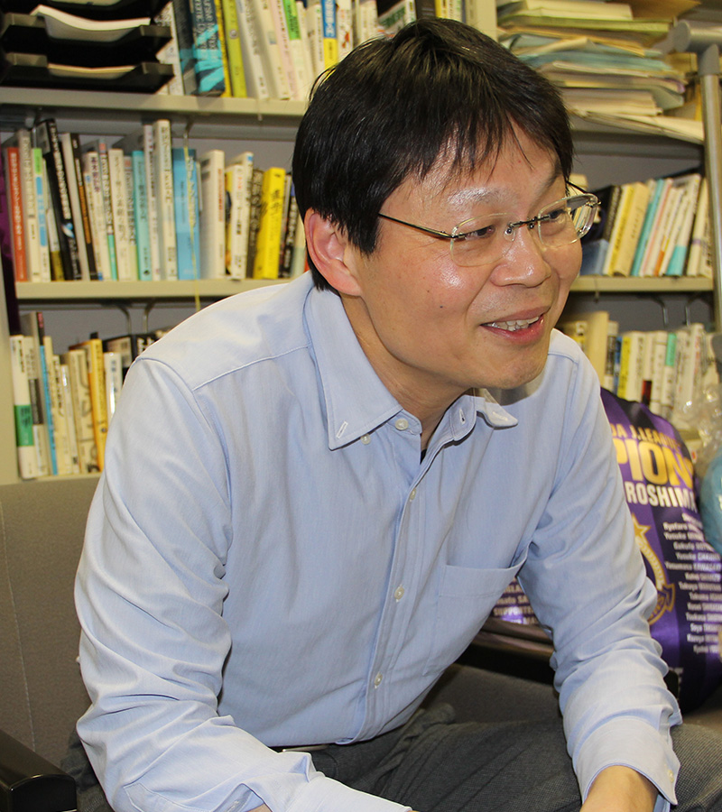 1995年、東北大学経済学部退学。2001年、東北大学大学院経済学研究科博士課程後期3年の課程修了。酒田短期大学講師、広島市立大学講師、同助教授、同准教授を経て、2017年より同教授。博士(経済学)。専門は「理論経済学」「実験経済学」。独裁者ゲーム、信頼ゲーム、公共財実験など主に社会規範に関係する経済実験を行っている。趣味はサッカー観戦で、広島を本拠地とするサンフレッチェ広島の大ファン。写真は、2024年2月に開業したホームスタジアムでの一枚。