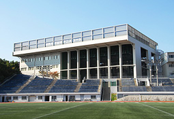 空中テニスコートは、第4学舎3号館の屋上にあります。同施設は、155名収容の観客席を備え、4面のハードコートを敷設しています。