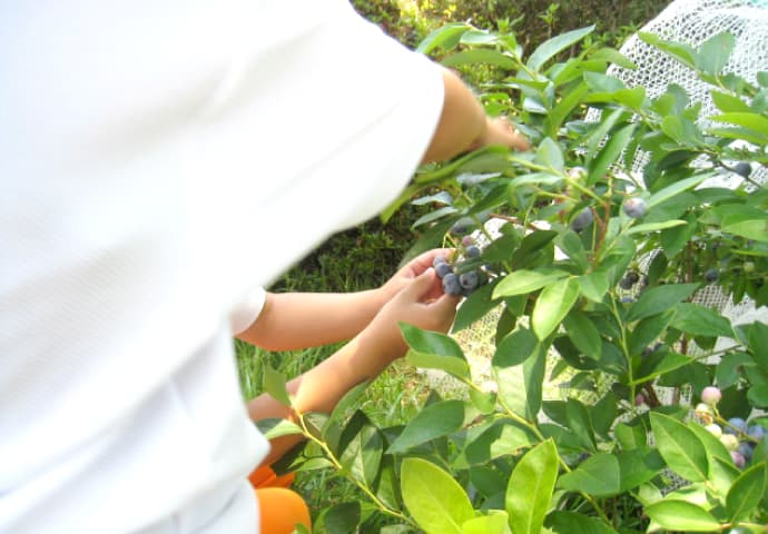 ブルーベリーを摘んでいただく